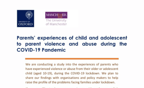 Quite serendipitously, today, Professor Rachel Condry and Dr. Caroline Miles have launched a piece of research into the ways that lockdown has affected families’ experience of violence and abuse from their children (aged 10 – 19), and of the ability to obtain support. They are seeking direct input from families and plan to use the findings to inform the development of policy and practice in the future. If you are interested in taking part, you are invited to complete a short survey. All contributions are anonymous, and the work has been approved by the university ethics committee. You will find more information along with the survey here, and also contact details if you have questions about the content or process of the survey. After you have submitted your replies you will be taken to a “Help page”.
