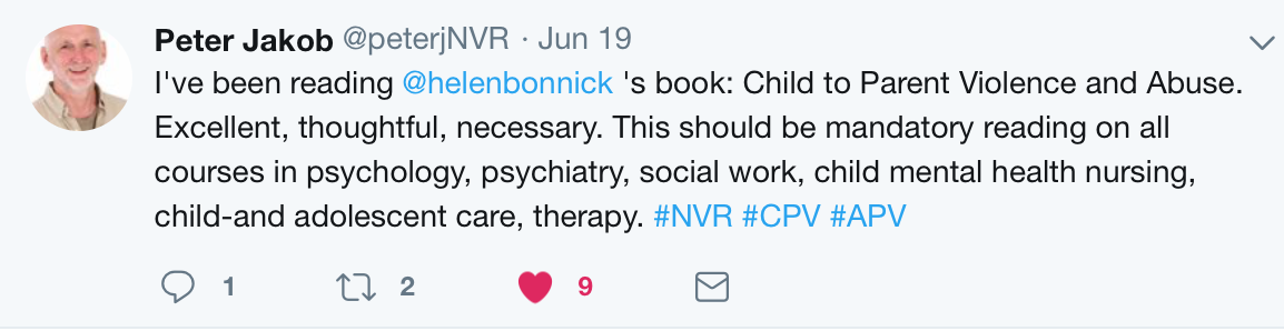 Ben Donagh, reviewing for Child Abuse Review: Fantastic book, which provides an ideal starting point for practitioners working with families experiencing #CPVA. I would recommend this book as an excellent guide, not only for practitioners working with families experiencing #CPVA but also academics, researchers and commissioning bodies. (May 2021)