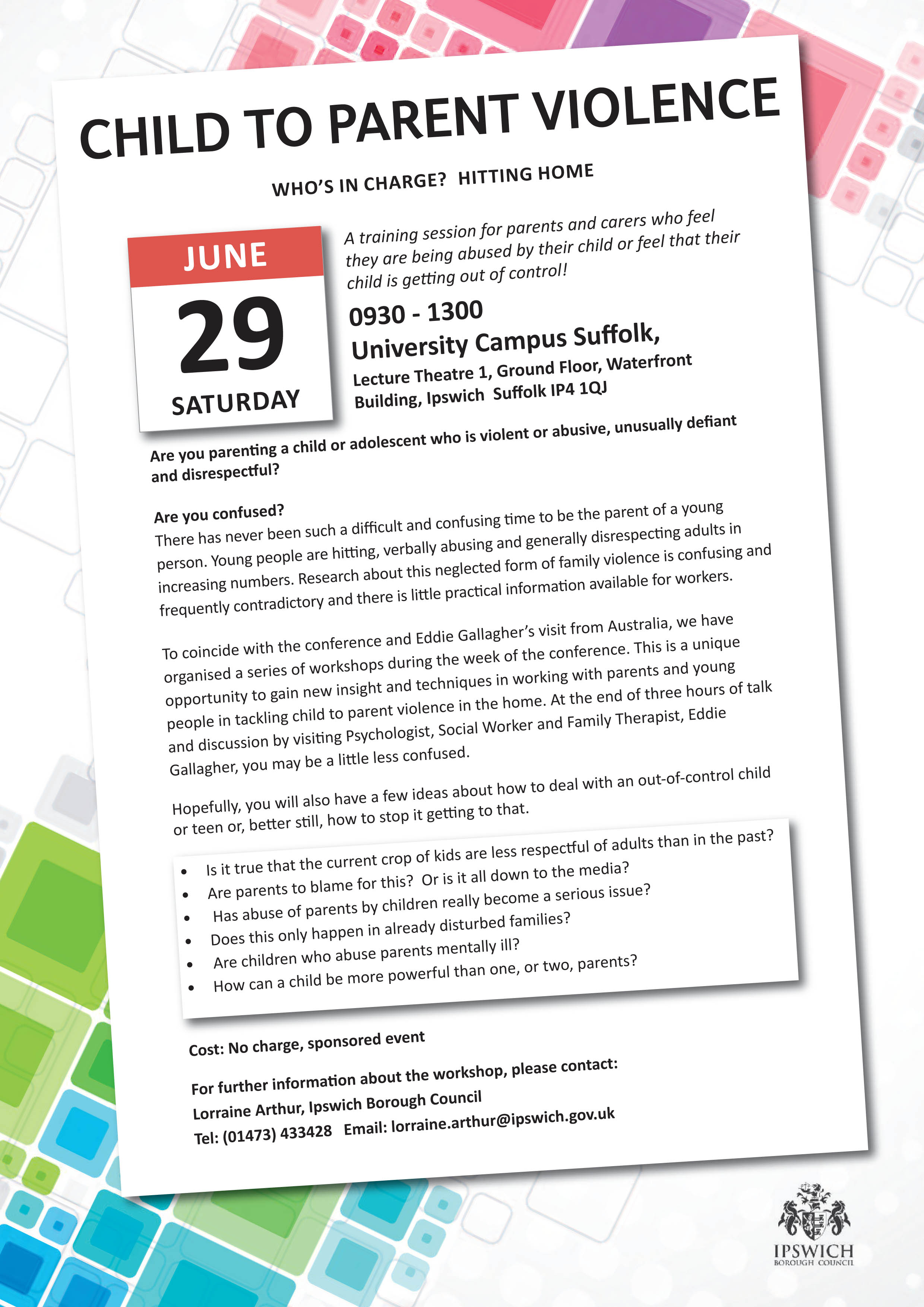 I’m very excited to post this flyer about a training day specially designed for parents and carers experiencing abuse from their children.